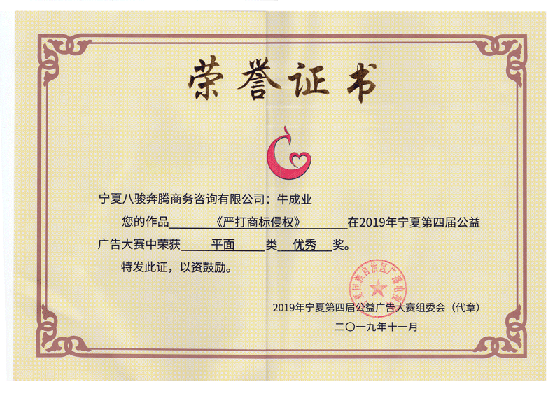歷屆寧夏公益廣告大賽獲獎(jiǎng)證書