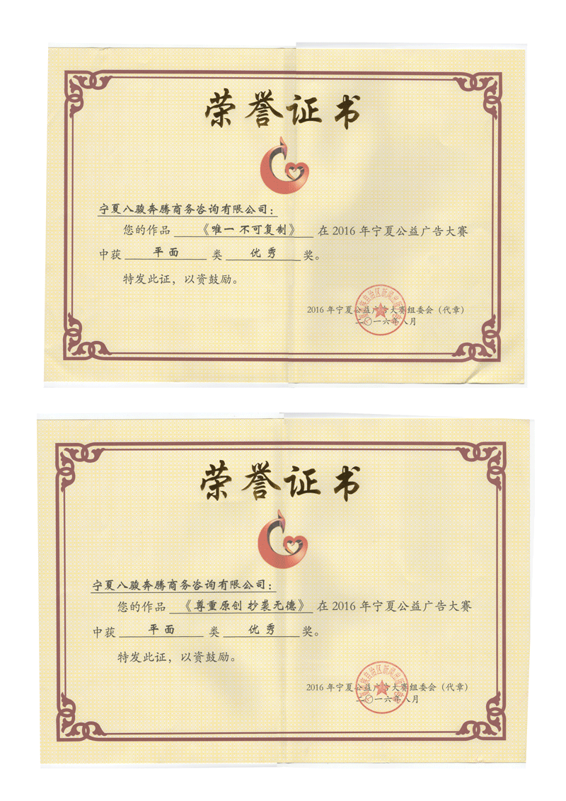 歷屆寧夏公益廣告大賽獲獎(jiǎng)證書